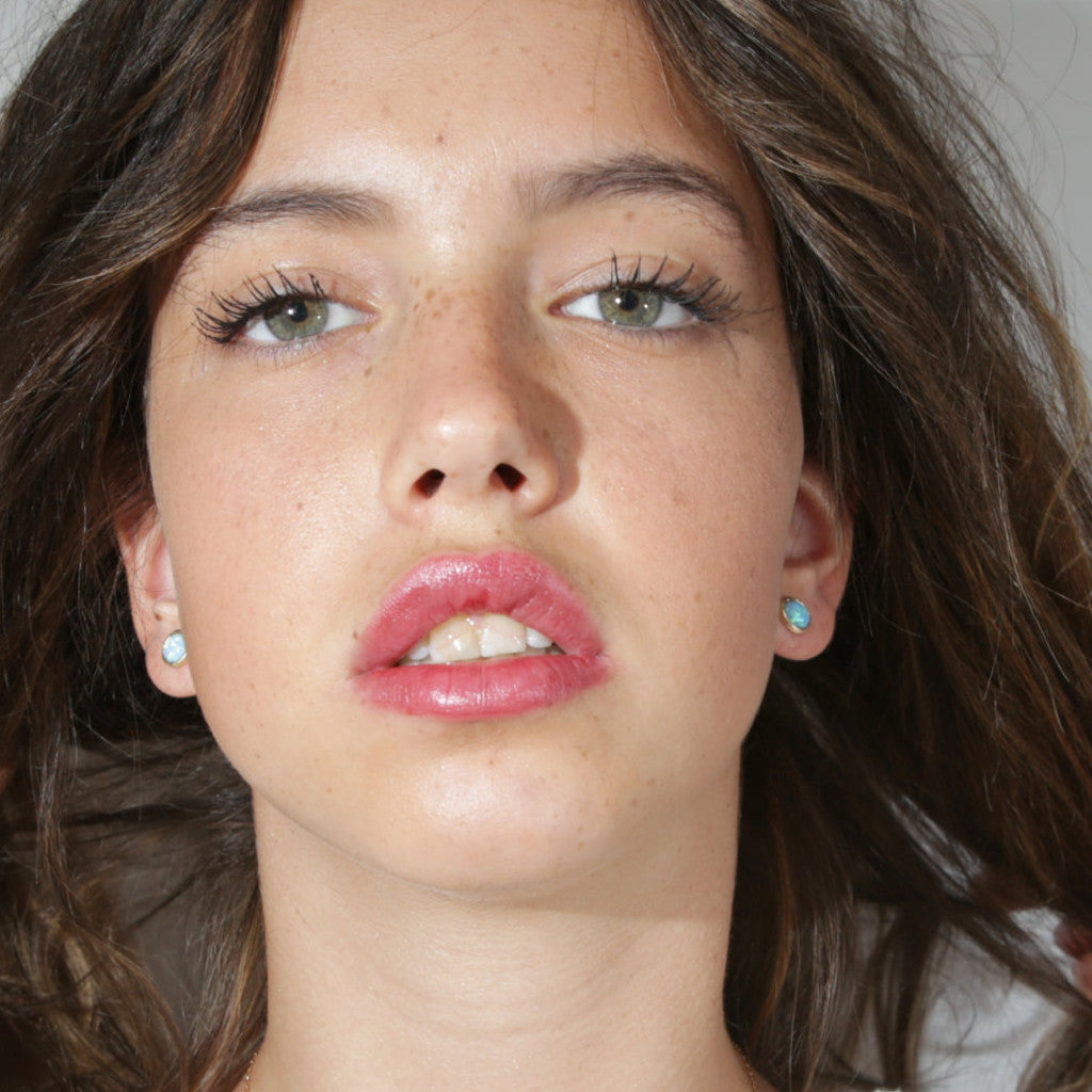 gold filled stud earrings with 6 mm opal stone.