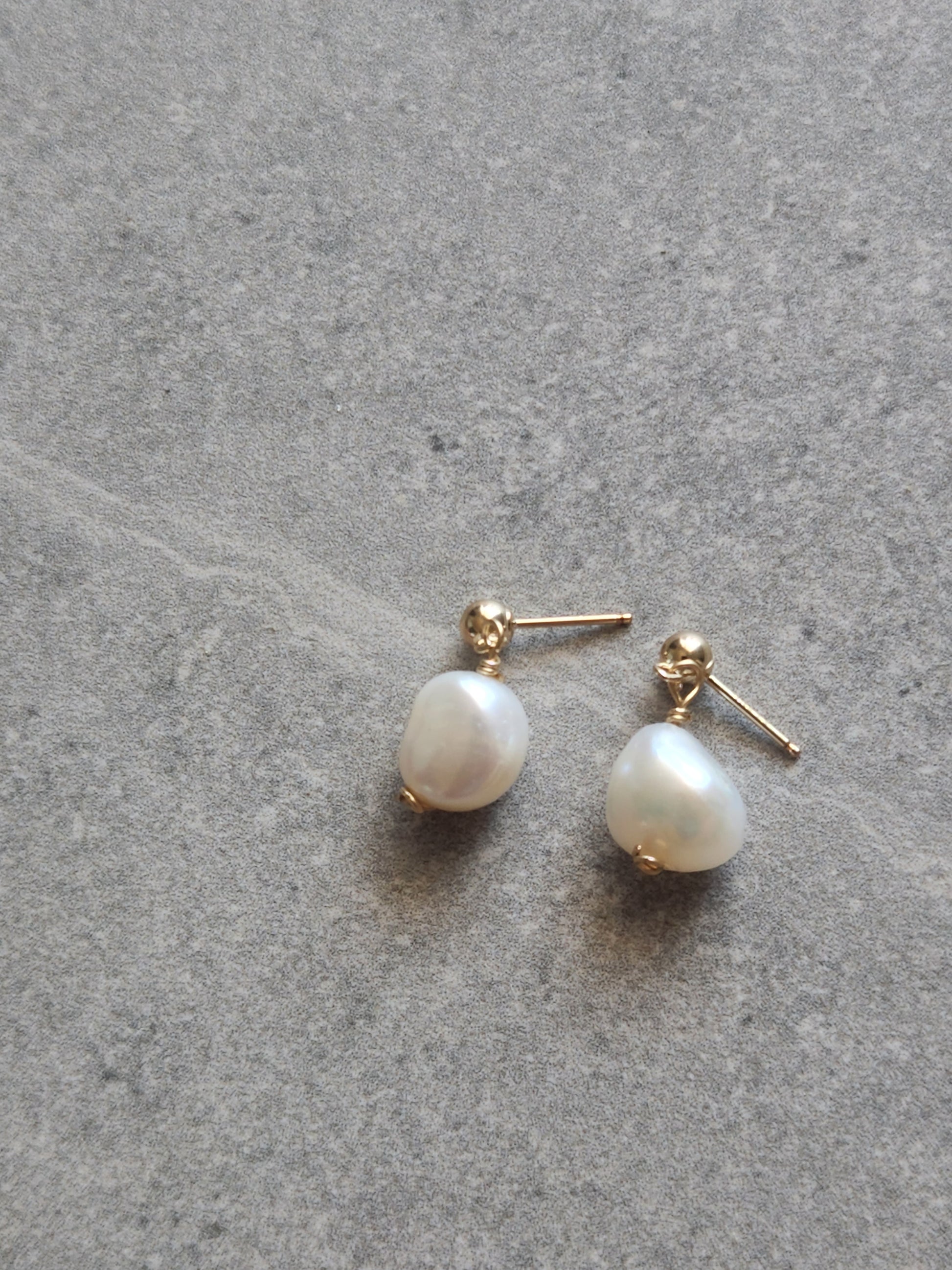 Gold filled stud earrings with white freshwater pearl bead.