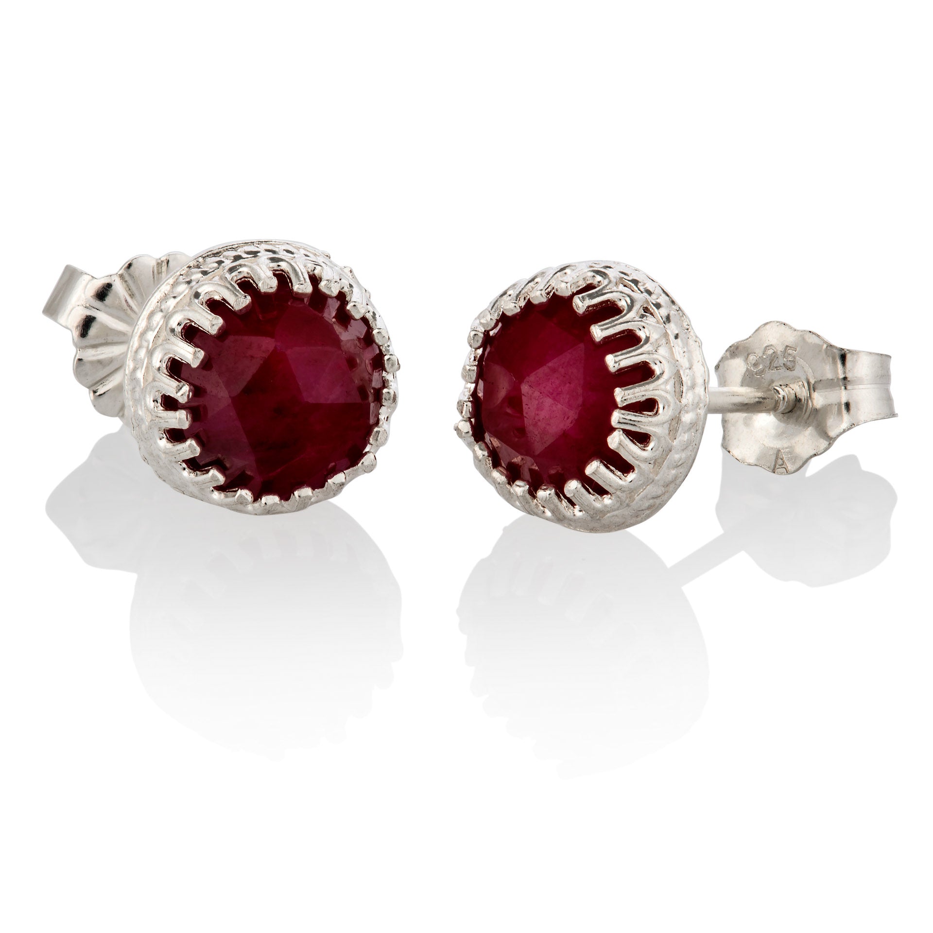 Sterling Silver Ruby Stud Earrings July birthstone Natural 6mm Red stone studs for women jewelry